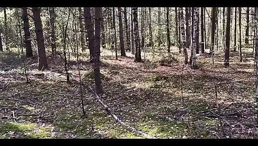 Трахнутую раком девушку, идущую в лесу с обнаженными сиськами